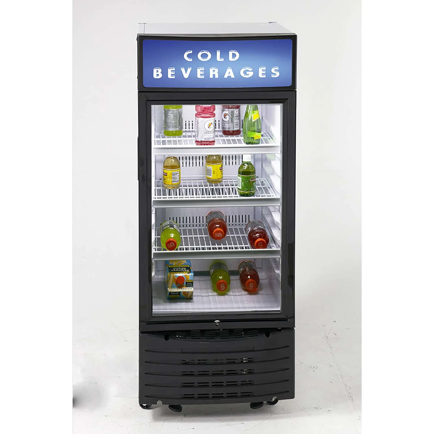This White Cabinet with Glass door 6.0 Cu. Ft. Beverage Center. It’s UL rated for commercial use. Adjustable and removable shelves, LED Light and includes roollers for easy movement. Additional Clear Plexi Insert For Custom Graphics. Great for Store USE or Home USE as extra beverage storage. Defrost system auto Power 115V / 60HZ Frost free cooling system Customizable light box at the top Self-closing door with integrated handle Security lock Space saving flush back design