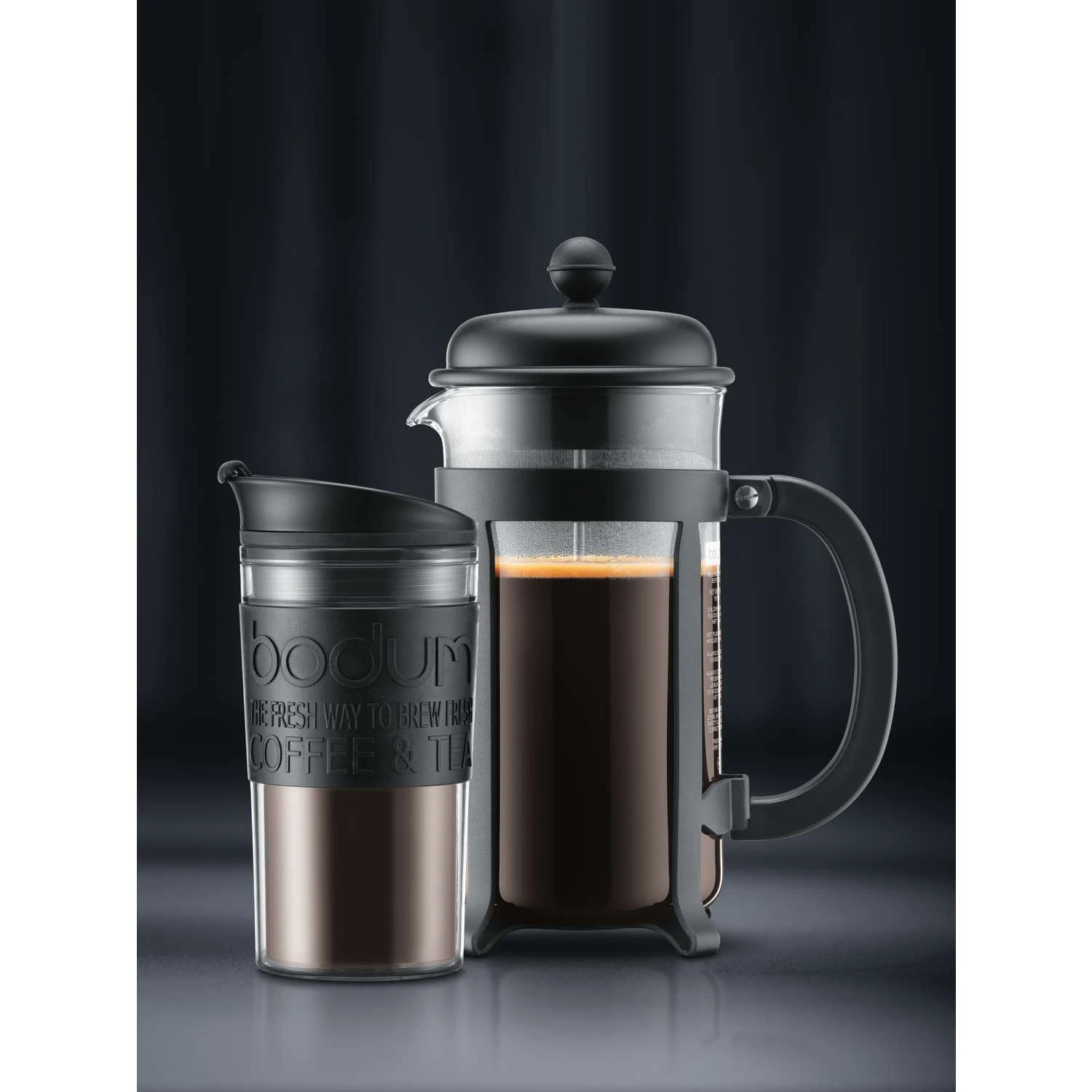 The JAVA French Press coffee maker incorporates the BODUM motto beautifully; good design doesn’t have to be expensive. After all, we want to give everybody a chance to brew an excellent cup of coffee in a green way. Just hot water and ground coffee is all that’s needed. Coarse ground coffee is recommended for best results. The coffee press is recognized worldwide as the best method for brewing rich, flavorful coffee and it brews coffee in just four minutes. The full coffee flavor is extracted through maximizing the surface area contact between the water and the coffee, ensuringthe best extraction of the natural oils and acids form the coffee bean. The JAVA follows the same design as the iconic Chambord. The only difference is that the lid and frame are made of plastic. The filter and plunger are stainless steel and the beaker is borosilicate glass. The French press is accepted worldwide as one of the best and greenest ways to brew coffee 3-part stainless steel mesh filter is included which allows for a premium extraction of your coffee’s aromatic oils and subtle flavors No paper filters required Dishwasher safe replacement parts available