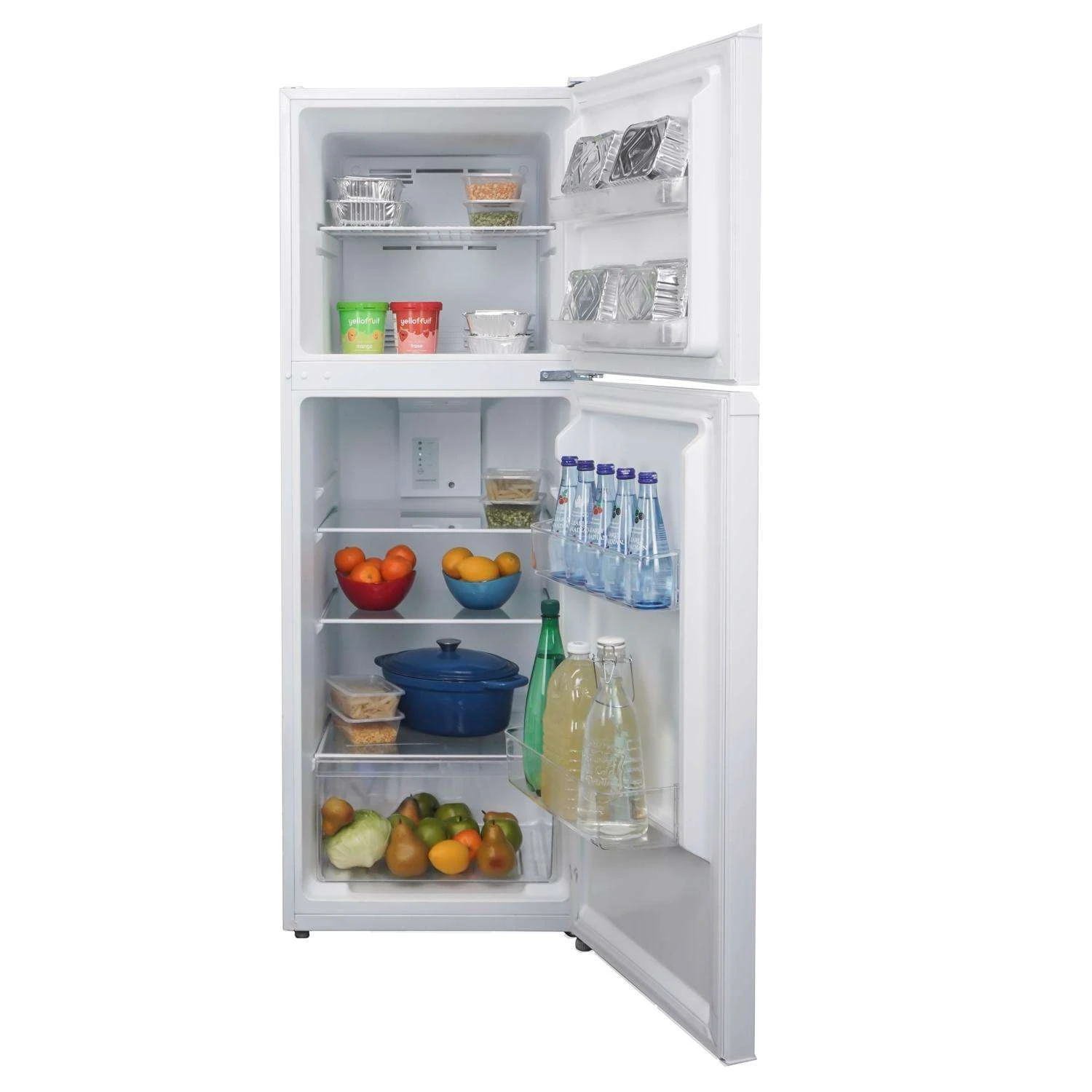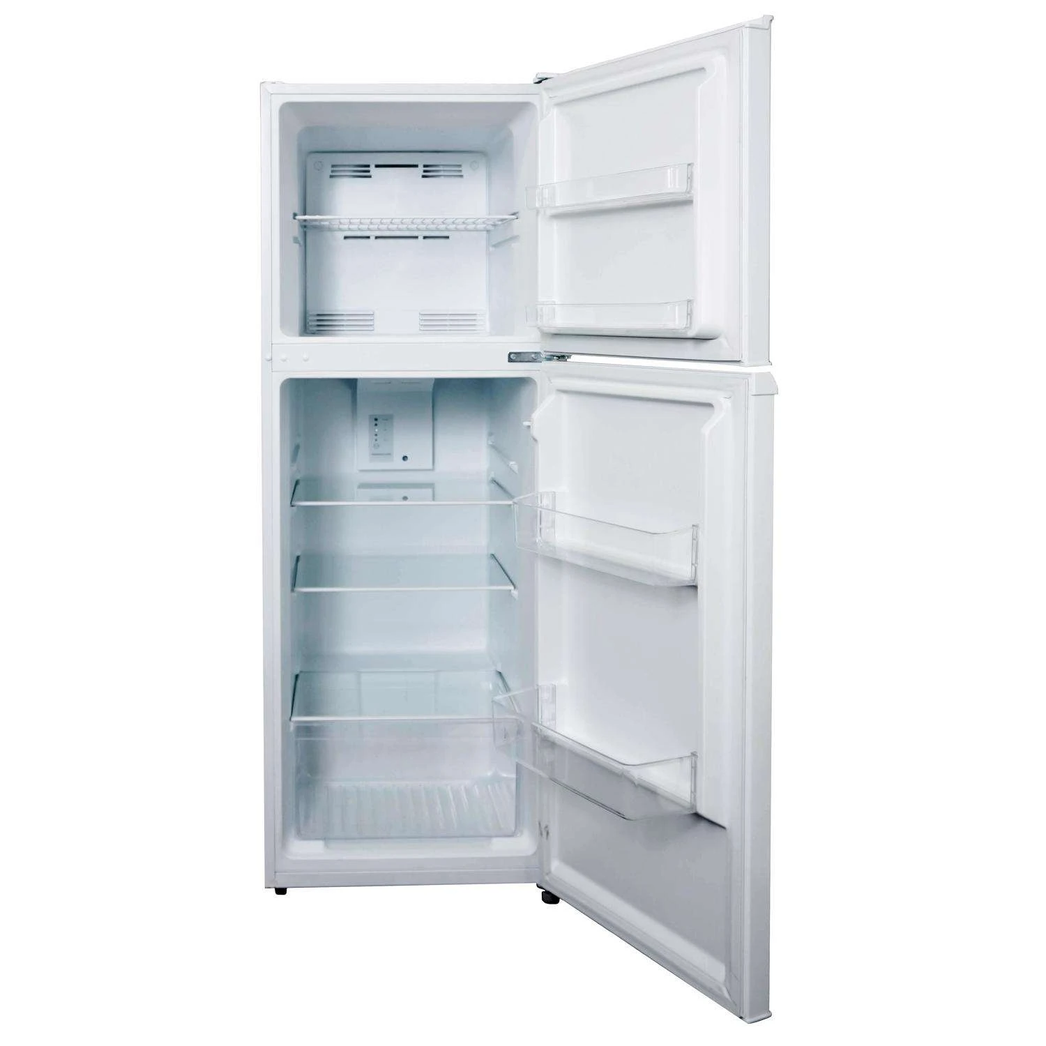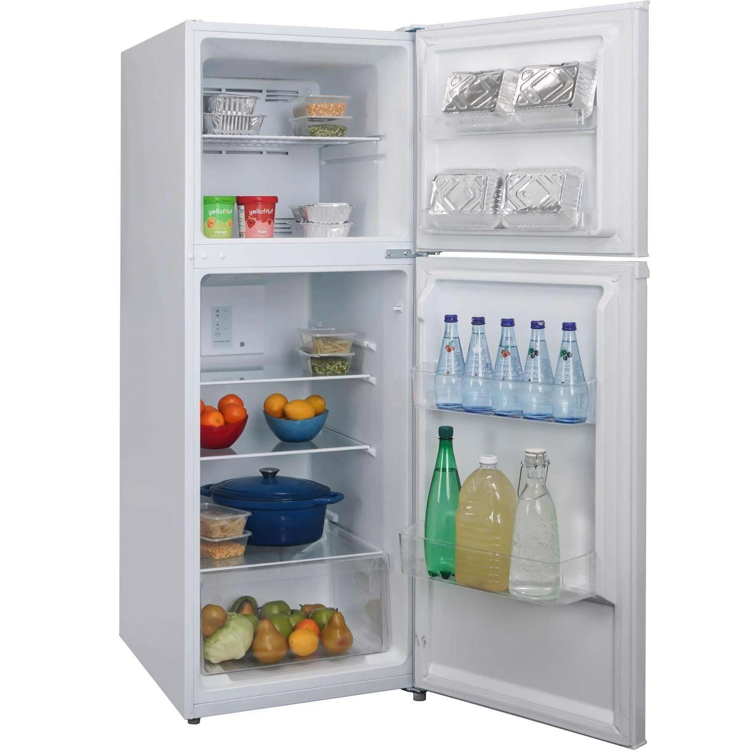 This 10.1 cu. ft. (286L) mid-size refrigerator with a top-mount freezer is perfect for your condo, apartment, cottage or any other small space. This fridge comes with 2 door shelves in the fridge and 2 in the freezer, for ample storage space, as well as a veggie crisper and reversible door hinge, so you can place it anywhere in your home! It also has a mechanical thermostat, so you can set the temperature to whatever you want and comes with a defrost drain so you Don’t have to worry about any leakage. Add this compact fridge to your home today! Danby 10.1 cu. ft. (286 L) frost free refrigerator 3 adjustable glass shelves for maximum storage capability Integrated door shelving with 2 full door shelves Vegetable crisper and glass cover Integrated door handle Electronic thermostat White LED display light