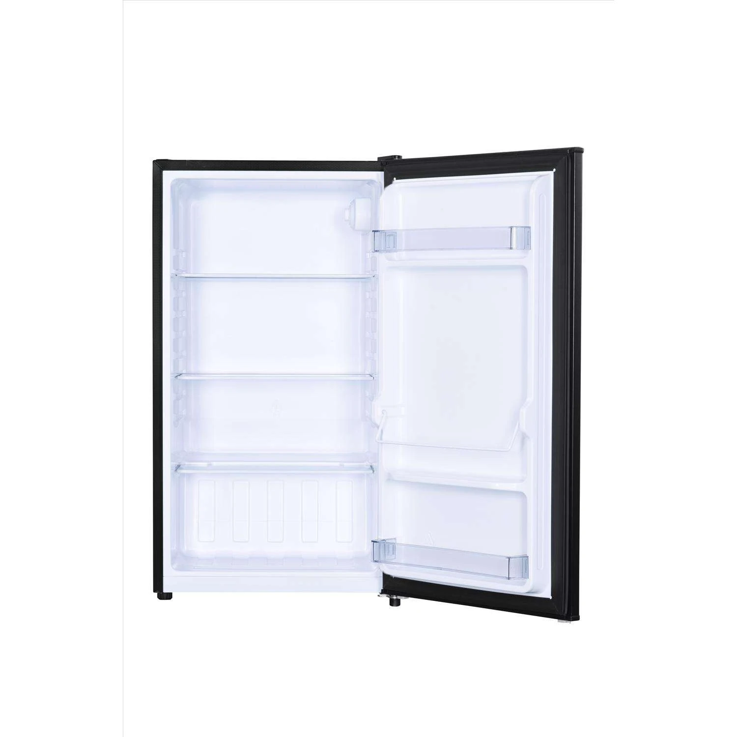 This sleek compact all-refrigerator by Danby offers 3.2 cubic feet (91 L) of refrigeration, making it ideal for lunchrooms, dorm rooms, smaller kitchens and wet bars. There’s plenty of room for all your snacks due to the mini fridge’s two full-width and one-half-width glass shelves. All your favorite drinks can be kept cool with the tall bottle storage and mechanical thermostat. Reduce your electrical bill and save on energy with this energy star-rated model. This small refrigerator also features a clever, reversible door hinge that enables you to adjust it for a left or right-handed opening via the integrated handle. Environmentally friendly R600a refrigerant Automatic defrost Smooth back design