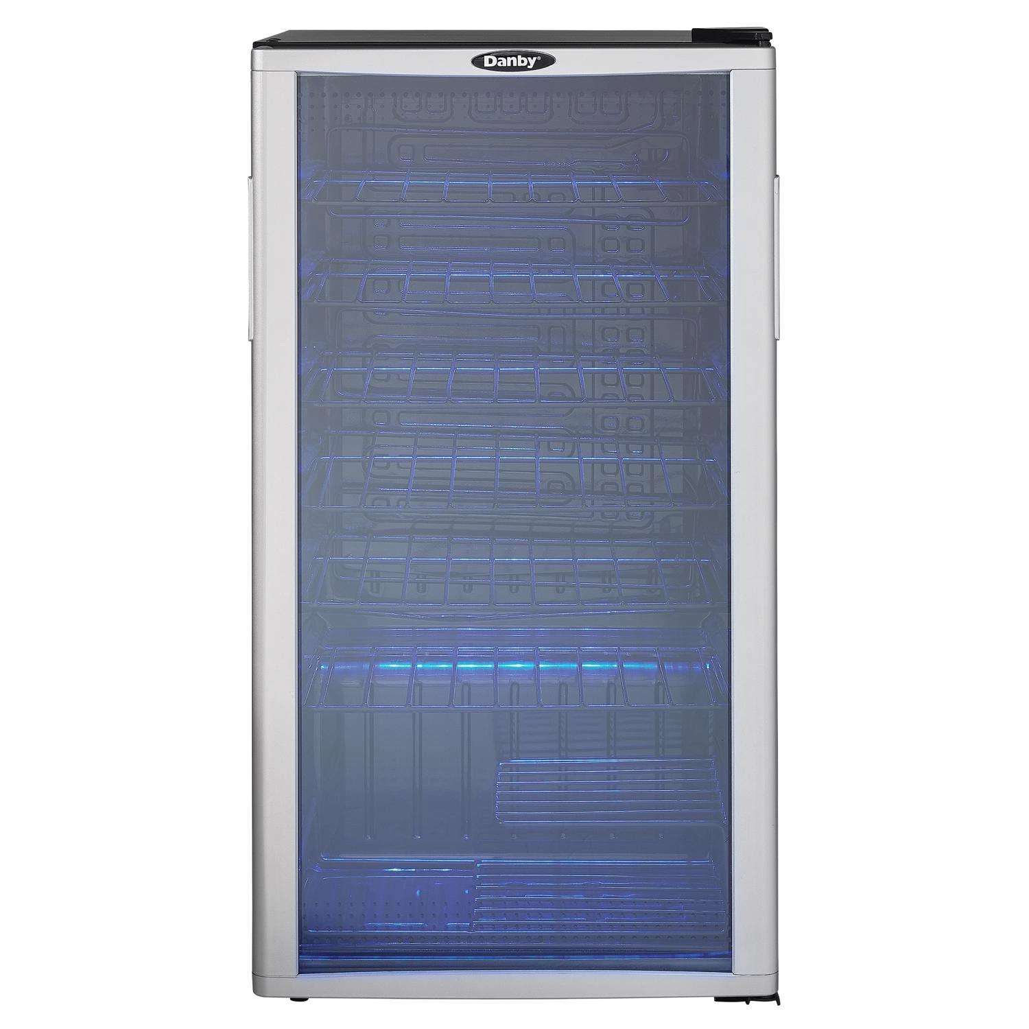 Your favorite white or red wines will have a fine home in this superior free-standing wine cooler designed to cool up to 36 bottles of wine. Danby’s 3.2 cu. ft. wine chiller is a stylish and sophisticated addition to your kitchen, bar, restaurant or cafe. The bright LED interior-light display is perfect for showmanship, ensuring you can find the next bottle you’ll indulge in easily. Your wine collection is well protected due to the attractive shatter-resistant tempered glass door trimmed in platinum. Features include a convenient automatic-defrosting system and five removable strong black storage shelves. In addition, the thermostat allows you to easily program and maintain the internal temperature anywhere between 42.8F – 57.2F (6C -14C). Plus, it comes with a reversible door swing allowing you to open it from the left or right-hand side depending on your preference. Keep up to 36 bottles of chilled wine on hand Suitable for red or white wines set temperature between 43F – 57F (6C-14C) Showcase lighting illuminates the cabinet with energy-efficient blue LEDs Platinum door trim with recessed handles The tempered glass door protects the wine from harmful UV rays