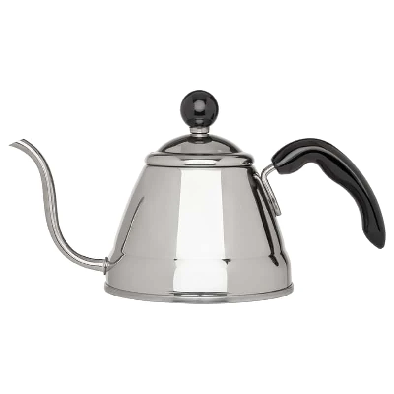 Finos narrow spout and goose neck curve allows precise control when pouring; 6-cup, 1,2-Liter capacity. Made in Japan of 18/8 stainless steel; angled handle keeps hands safely away from the heated pot. Allows for total control of a slow and precise water flow to extract the most flavor when brewing coffee or tea using the pour over method. Achieve a better brew without expensive, bulky machines; save precious counter space and money. Safe for use on gas, electric and induction stovetops; dishwasher safe. Made in Japan of 18/8 Stainless Steel Dishwasher Safe Safe for use on gas, electric and induction stovetops