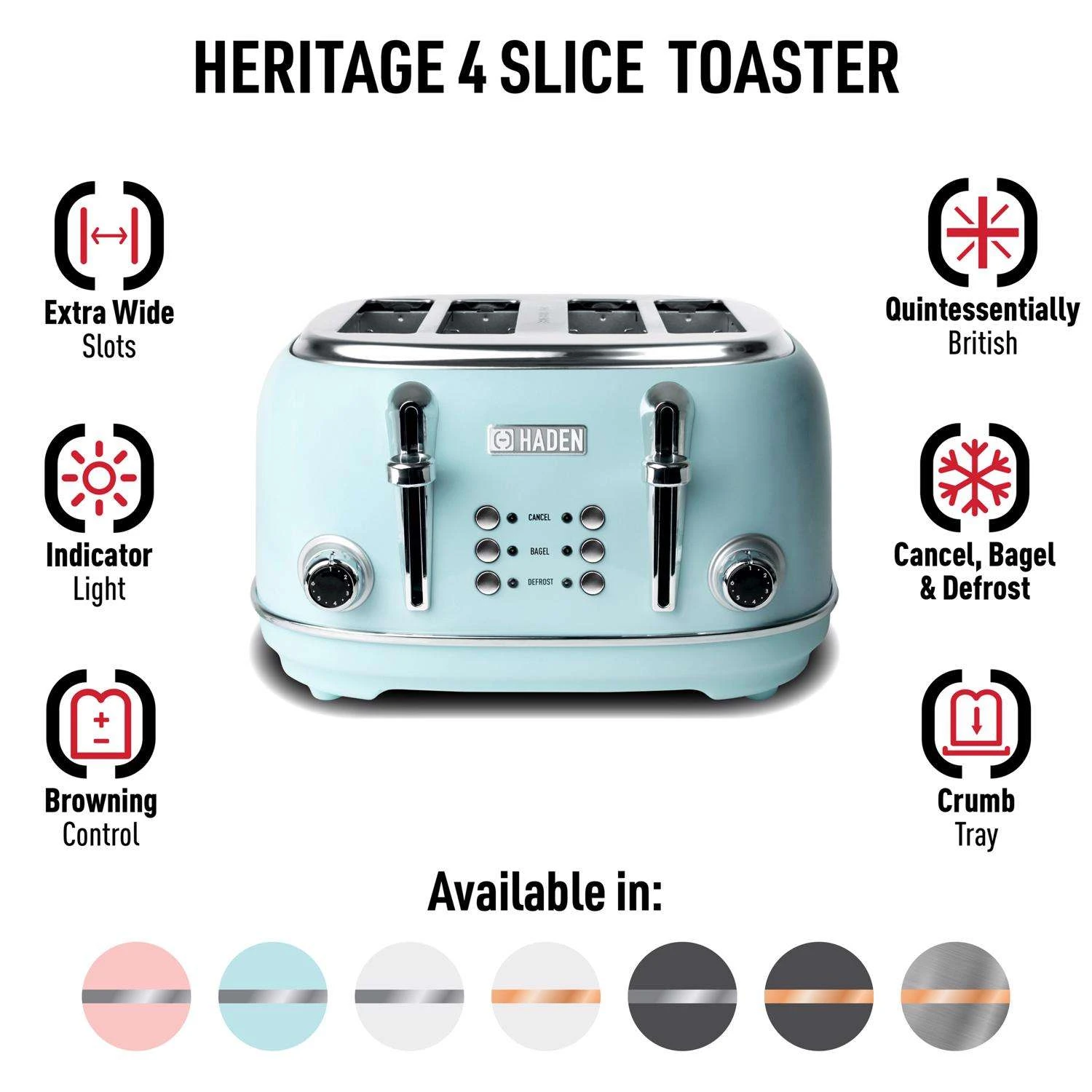 Haden Heritage Stainless Steel Turquoise 4 Slot Toaster 7.5 In. H X 12.5 In. W X 11.5 In. D