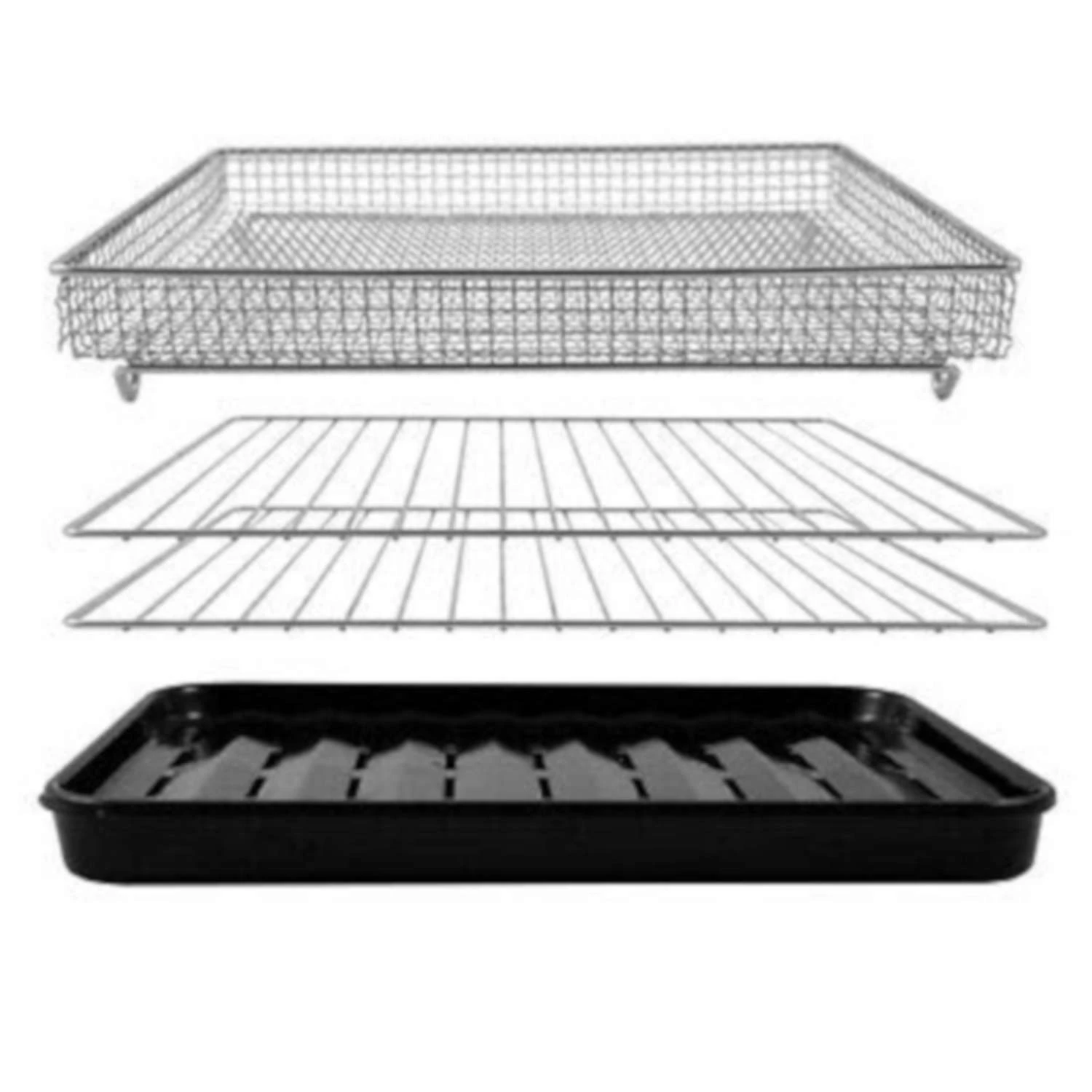 | What's Included | Temperature Probe, Removable Crumb Tray, 2 Heavy Duty Cooking Racks, Enamel Baking Pan, Broiler Rack and Chrome Plated Air Fry Basket |