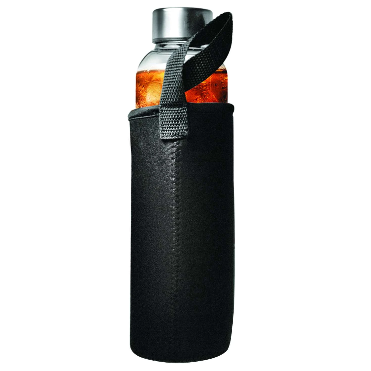 Crafted from temperature safe borosilicate glass while utilizing a super fine stainless steel mesh that doesn’t alter flavor, our Cold Brew Travel Bottle is the ideal solution for enjoying delicious cold brewed coffee on the go. Guaranteed to make refreshing cups of iced coffee, our Cold Brew Travel Bottle produces coffee that’s up to 65% less acidic and naturally sweeter than any heat brewed variety. It’s the perfect accoutrement for creating rich, smooth and icy cold coffee to jolt you awake in the morning or to make it through those long summer days. With a minimal physical footprint, the Primula Cold Brew Travel Bottle is incredibly useful for out of the house expeditions! Its slim design makes it perfect for storage in a suitcase, canvas bag, shoulder bag, backpack and more and the insulating neoprene sleeve has a carry strap for easy access. Get brewing. Enjoy smooth, delicious cold brew coffee at home and on-the-go Made of extra-tough borosilicate glass with a durable neoprene protective sleeve Perfect for making and taking cold brew anytime, anywhere Use your favorite coffee grounds or tea and base your brew time on desired strength The cold brew and travel bottle is dishwasher safe making clean up a breeze Fine mesh stainless steel coffee filter keeps grounds out of your coffee