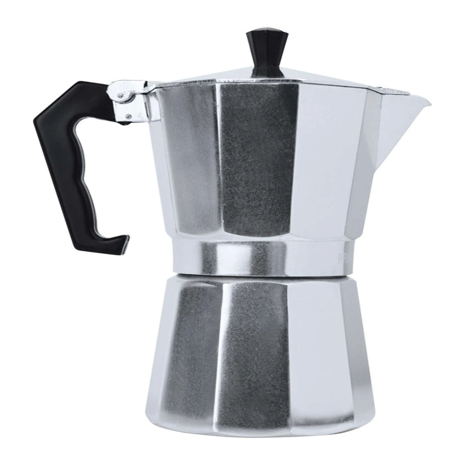 The Primula aluminum espresso maker makes flavorful coffee in minutes. Save yourself from trips to expensive coffee chops and make your favorite espresso drinks at home. Carefully crafted with strong, long-lasting aluminum. Provides thorough and even heat distribution for enhanced flavor and aroma. Within minutes, delicious, bubbling cups of espresso will fill your pot. Remove from heat and enjoy. Make coffee house quality coffee from the convenience of your home, brewed exactly to your preferences. Simply rinse parts with warm water and allow to dry before reassembling Simply fill the lower chamber with water, add ground coffee or espresso to the filter and place on stovetop Works on all electric, ceramic and gas stove tops including propane making it the perfect camping accessory Can be used to make demitasse espresso, lattes, cappuccinos, cuban coffee, Italian-style coffee, moka, mochas, crema and more