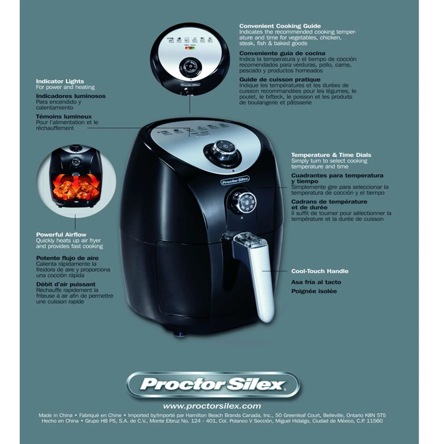 | Search Field | Proctor Silex Black 1.5 L Programmable Air Fryer Small Appliances Indoor Fryers ELECTRIC FRYERS/SKILLETS AIR FRYERS HAMILTON BCH/PROCTOR SILX Proctor Silex |