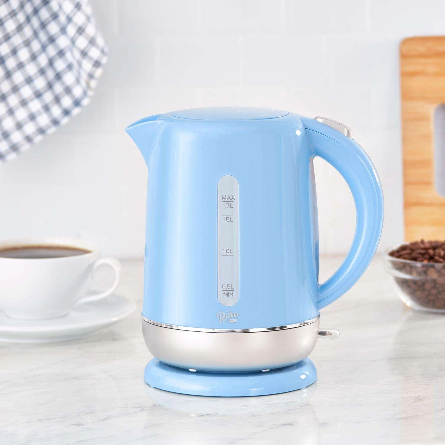 Prepare coffee, tea using the Rise by Dash Electric Kettle! The cordless Kettle lifts right off its base and features a cool-touch handle for safe transport from kitchen to table, making it ideal for entertaining. Just press the button to start boiling and boil dry protection will automatically shut the kettle down when it’s nearly empty. The Kettle makes it easy to prepare drinks as well as foods like oatmeal and ramen in a dash. Boil water with one touch using the Rise by Dash electric kettle 1.7-liter capacity great for single-serving beverages or for entertaining Rapid-boil technology speeds the heating process Cordless kettle lifts from the base for easy pouring Choice of Rise by Dash colors that match your kitchen Boil dry protection shuts down when nearly empty