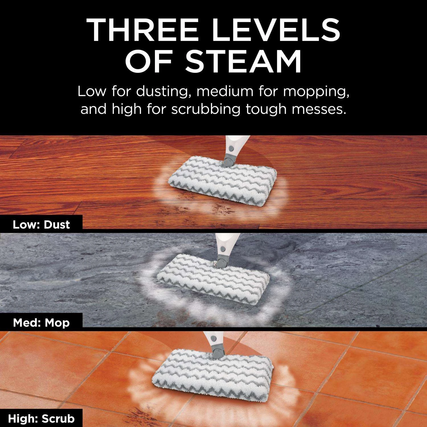 Clean like you mean it with the Shark Professional Steam Pocket Mop. Featuring intelligent steam control technology, this lightweight and easy-to-use mop offers superior cleaning and sanitation for all your hard floor surfaces. Ready in 30 seconds, the Shark intelligent steam control provides continuous steam delivery and three settings of variable steam for all your cleaning needs. Simply adjust the steam mode to suit your floor surface and cleaning task at hand, ideal for hardwood, tile or cement floors for a noticeably cleaner finish. 3 levels of intelligent steam control ensure you have the right amount of steam for every cleaning job Turns ordinary tap water into super-heated steam to eliminate 99.9% of germs and bacteria; no harsh chemicals needed Shark steam pocket technology provides 2-sided cleaning with every pad 180-degree swivel steering offers easy maneuverability into tight corners and around furniture XL water capacity 22 ft. power cord is long enough for all your cleaning needs